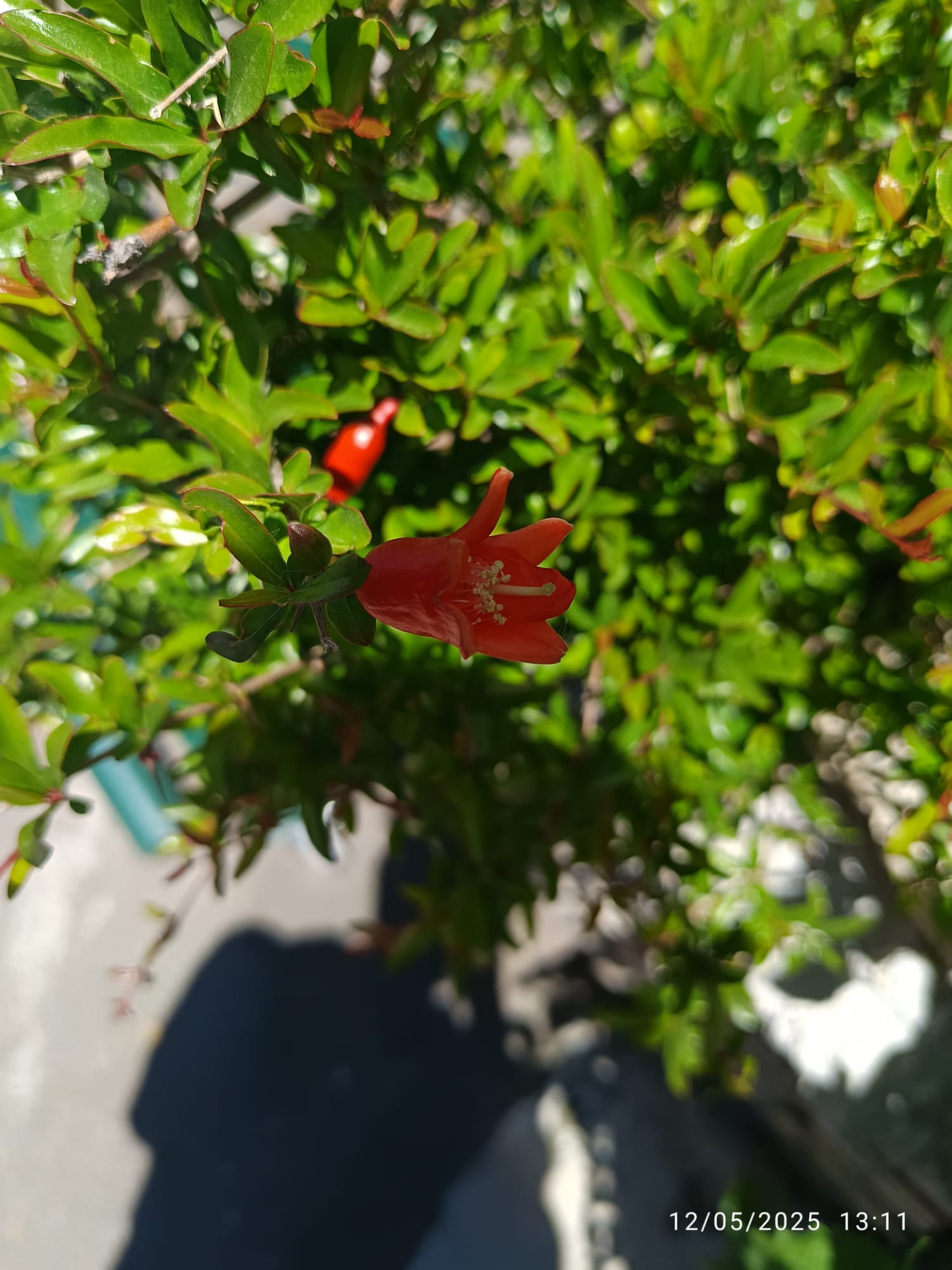 Descripción: 5 metros de altura, hojas pequeñas y brilantes, flor color rojo-anaranjado con forma de campana, generalmente solitarias. Su fruto es una granada